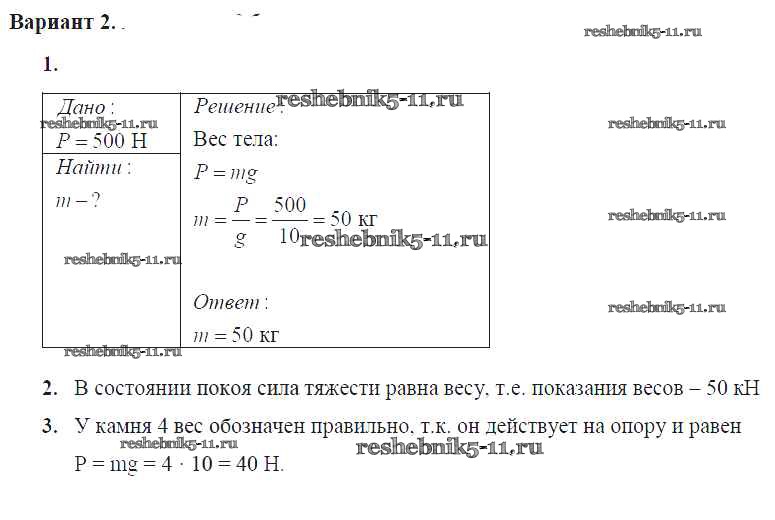 Решебник №2 / самостоятельная работа / ср-№28. единицы силы. связь между силой тяжести и массой тела / вариант №2