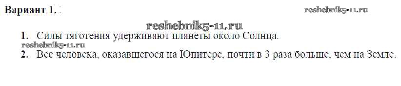 Решебник №2 / самостоятельная работа / ср-№29. сила тяжести на других планетах / вариант №1