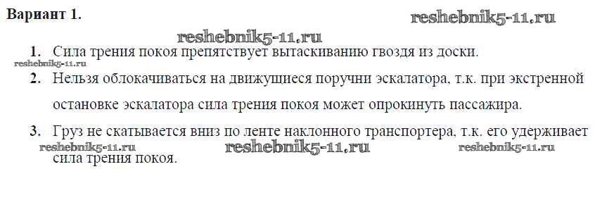 Готовая домашняя работа с ответами по Физике за 7 класс Марон Самостоятельные и контрольные работы Вертикаль Дрофа 2016 ФГОС - СР-№33. Трение покоя Вариант №1