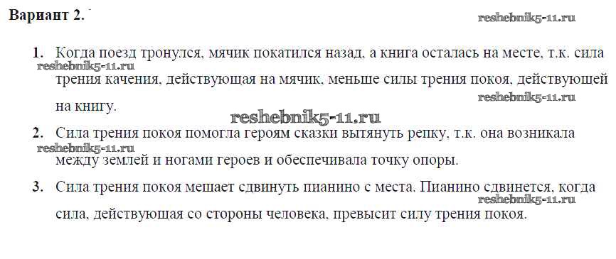 Готовая домашняя работа с ответами по Физике за 7 класс Марон Самостоятельные и контрольные работы Вертикаль Дрофа 2016 ФГОС - СР-№33. Трение покоя Вариант №2