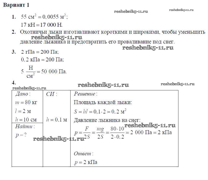 Решебник №2 / самостоятельная работа / ср-№35. давление. единицы давления / вариант №1