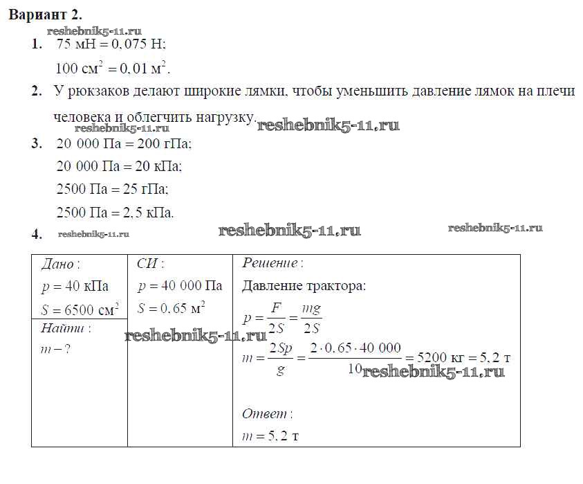 Решебник №2 / самостоятельная работа / ср-№35. давление. единицы давления / вариант №2
