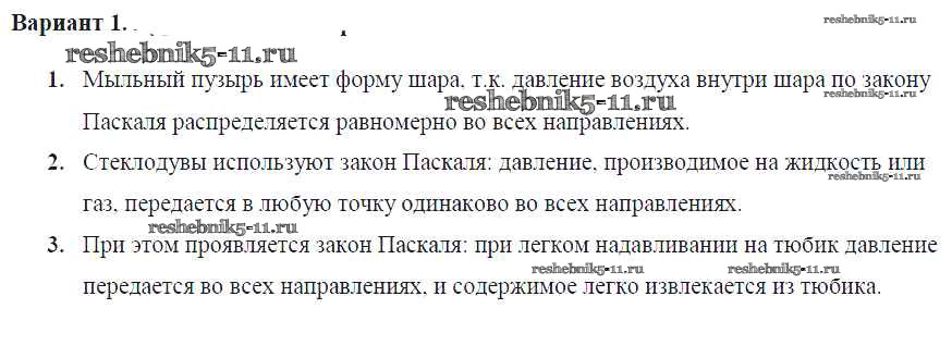 Готовая домашняя работа с ответами по Физике за 7 класс Марон Самостоятельные и контрольные работы Вертикаль Дрофа 2016 ФГОС - СР-№38. Передача давления жидкостями и газами. Закон Паскаля Вариант №1