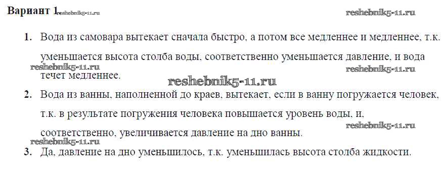 Готовая домашняя работа с ответами по Физике за 7 класс Марон Самостоятельные и контрольные работы Вертикаль Дрофа 2016 ФГОС - СР-№39. Давление в жидкости и газе Вариант №1