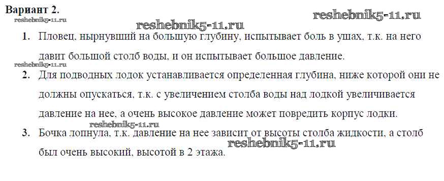 Готовая домашняя работа с ответами по Физике за 7 класс Марон Самостоятельные и контрольные работы Вертикаль Дрофа 2016 ФГОС - СР-№39. Давление в жидкости и газе Вариант №2