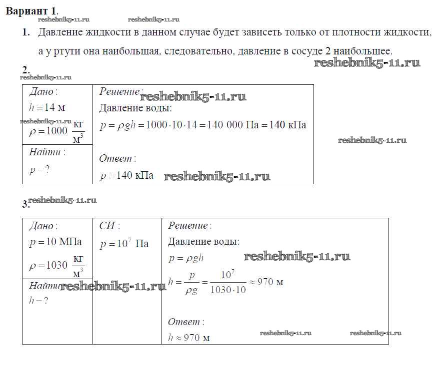 Решебник №2 / самостоятельная работа / ср-№40. расчет давления жидкости на дно и стенки сосуда / вариант №1