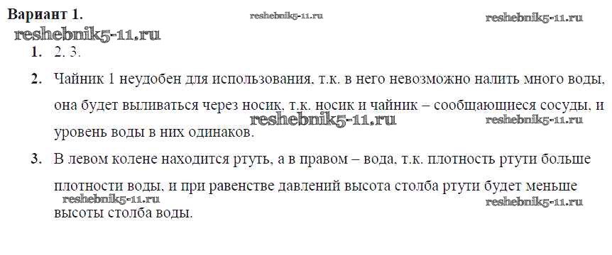Готовая домашняя работа с ответами по Физике за 7 класс Марон Самостоятельные и контрольные работы Вертикаль Дрофа 2016 ФГОС - СР-№41. Сообщающиеся сосуды Вариант №1