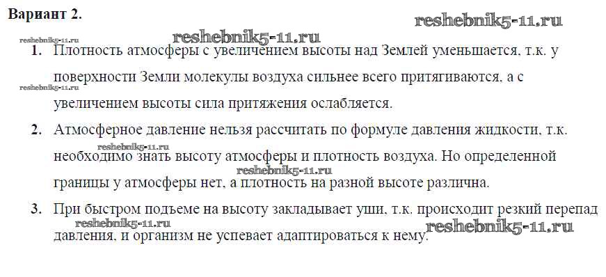 Готовая домашняя работа с ответами по Физике за 7 класс Марон Самостоятельные и контрольные работы Вертикаль Дрофа 2016 ФГОС - СР-№43. Почему существует воздушная оболочка Земли Вариант №2