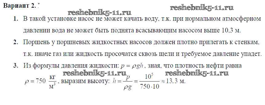 Готовая домашняя работа с ответами по Физике за 7 класс Марон Самостоятельные и контрольные работы Вертикаль Дрофа 2016 ФГОС - СР-№48. Поршневой жидкостный насос Вариант №2