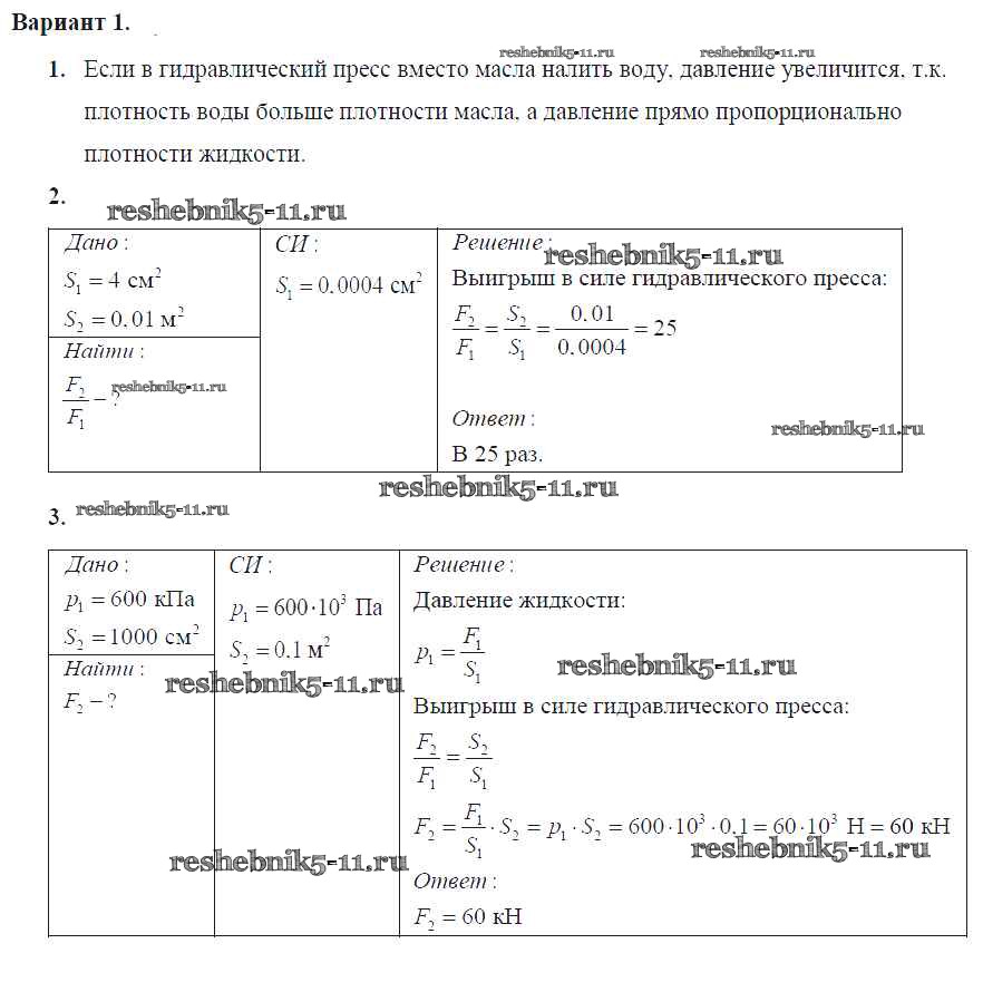 Решебник №2 / самостоятельная работа / ср-№49. гидравлический пресс / вариант №1