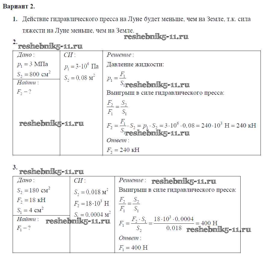 Физика за 7 класс Марон Самостоятельные и контрольные работы Вертикаль Дрофа ср-№49. гидравлический пресс Вариант №2