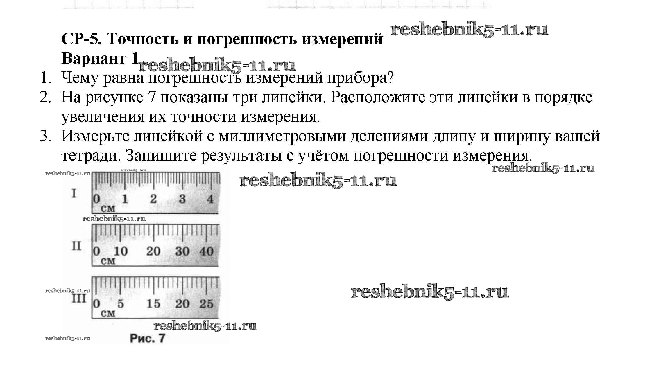 Готовая домашняя работа с ответами по Физике за 7 класс Марон Самостоятельные и контрольные работы Вертикаль Дрофа 2016 ФГОС - СР-№5. Точность и погрешность измерений Вариант №1
