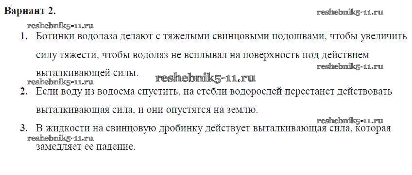 Готовая домашняя работа с ответами по Физике за 7 класс Марон Самостоятельные и контрольные работы Вертикаль Дрофа 2016 ФГОС - СР-№50. Действие жидкости и газа на погруженное в них тело Вариант №2