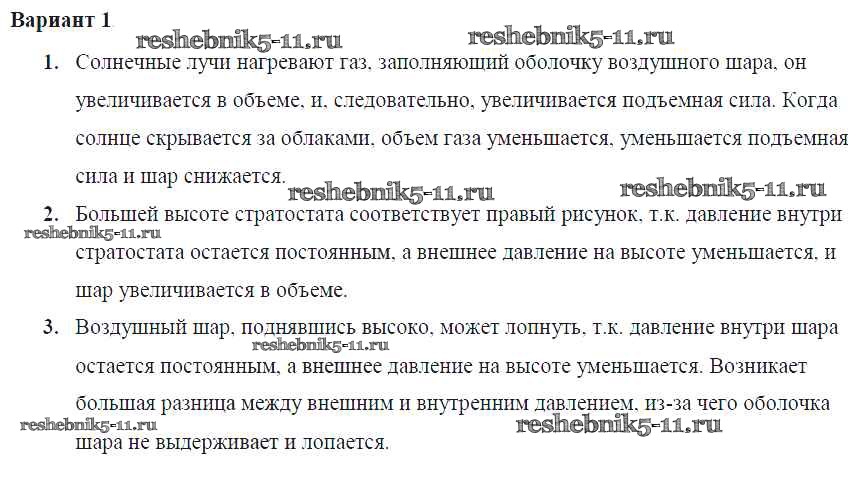 Готовая домашняя работа с ответами по Физике за 7 класс Марон Самостоятельные и контрольные работы Вертикаль Дрофа 2016 ФГОС - СР-№54. Воздухоплавание Вариант №1