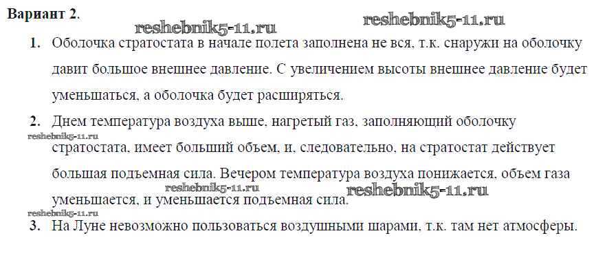 Решебник №2 / самостоятельная работа / ср-№54. воздухоплавание / вариант №2
