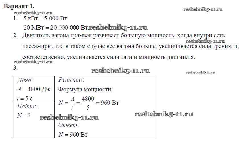 Решебник №2 / самостоятельная работа / ср-№56. мощность. единицы мощности / вариант №1