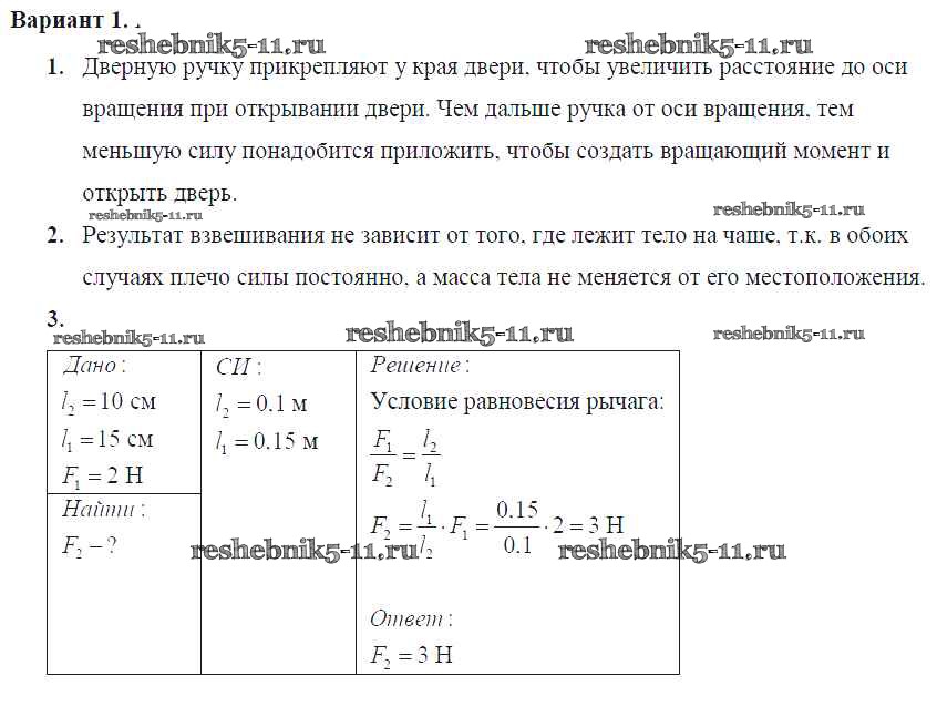 Готовая домашняя работа с ответами по Физике за 7 класс Марон Самостоятельные и контрольные работы Вертикаль Дрофа 2016 ФГОС - СР-№58. Рычаги. Равновесие сил на рычаге Вариант №1
