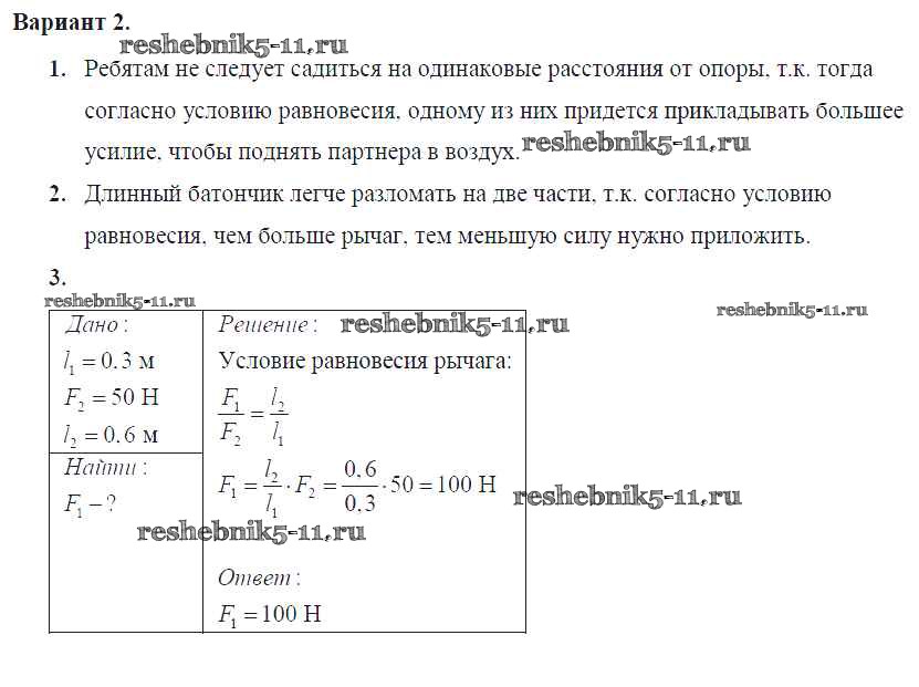 Решебник №2 / самостоятельная работа / ср-№58. рычаги. равновесие сил на рычаге / вариант №2