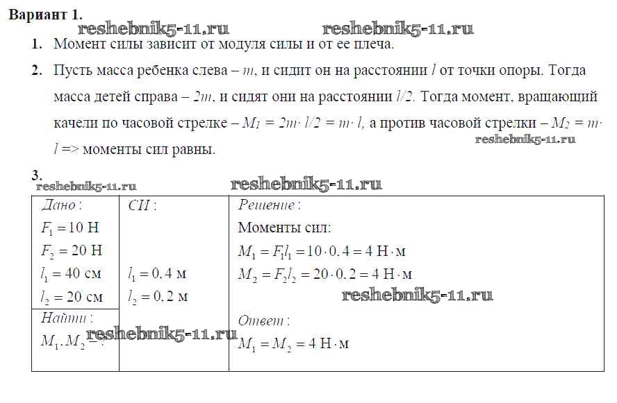Решебник №2 / самостоятельная работа / ср-№59. момент силы / вариант №1