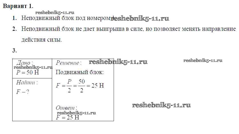 Решебник №2 / самостоятельная работа / ср-№61. применение правила равновесия рычага к блоку / вариант №1