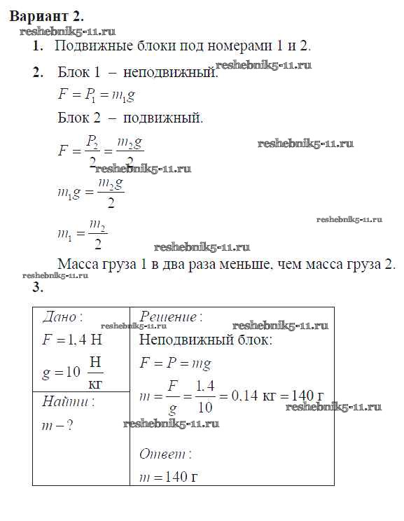 Решебник №2 / самостоятельная работа / ср-№61. применение правила равновесия рычага к блоку / вариант №2