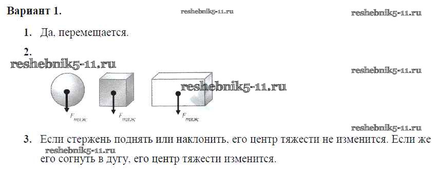 Готовая домашняя работа с ответами по Физике за 7 класс Марон Самостоятельные и контрольные работы Вертикаль Дрофа 2016 ФГОС - СР-№63. Центр тяжести тела Вариант №1