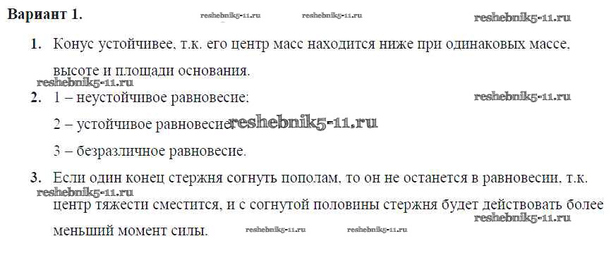 Готовая домашняя работа с ответами по Физике за 7 класс Марон Самостоятельные и контрольные работы Вертикаль Дрофа 2016 ФГОС - СР-№64. Условия равновесия тел Вариант №1