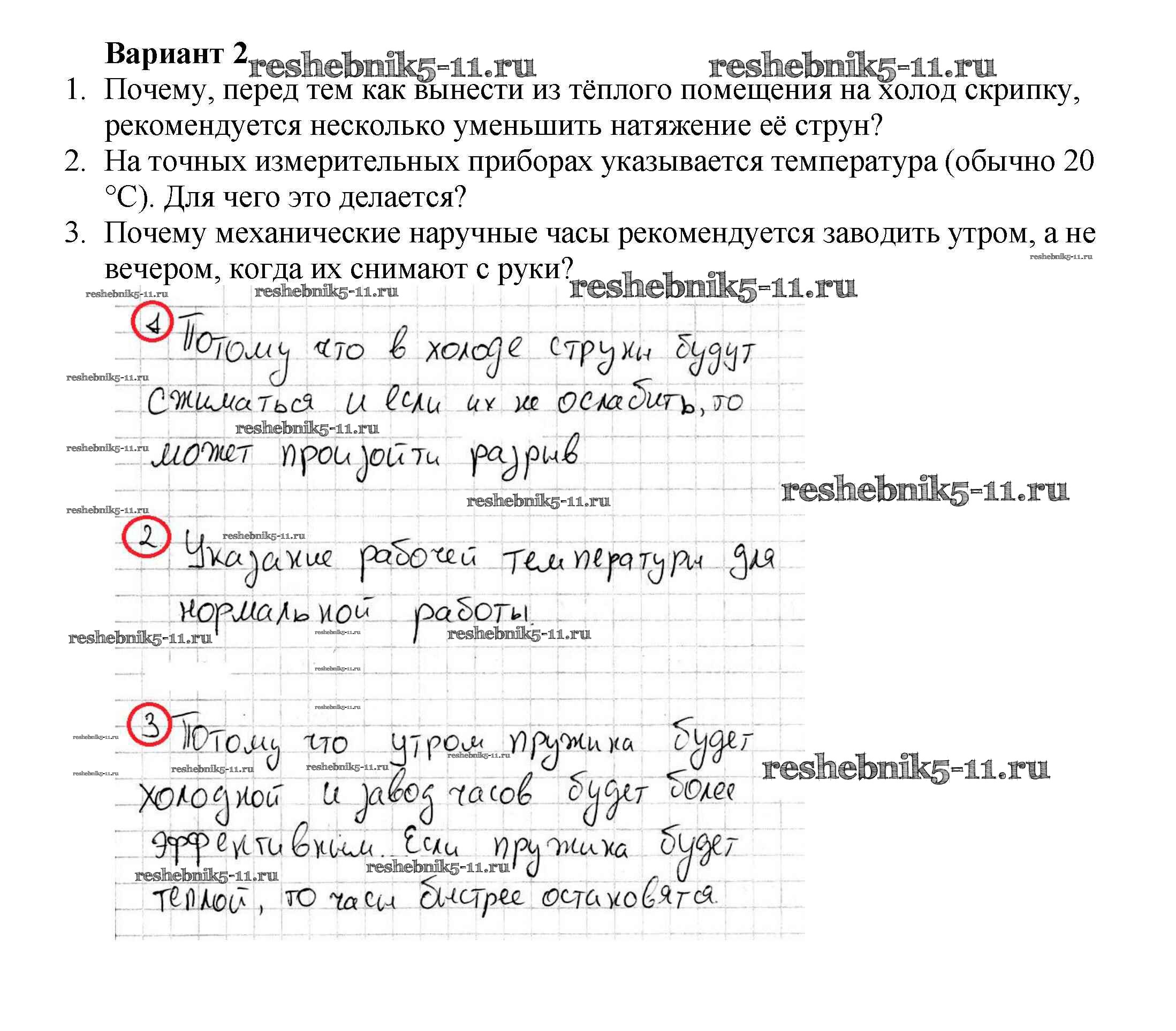 Готовая домашняя работа с ответами по Физике за 7 класс Марон Самостоятельные и контрольные работы Вертикаль Дрофа 2016 ФГОС - СР-№7. Строение вещества Вариант №2