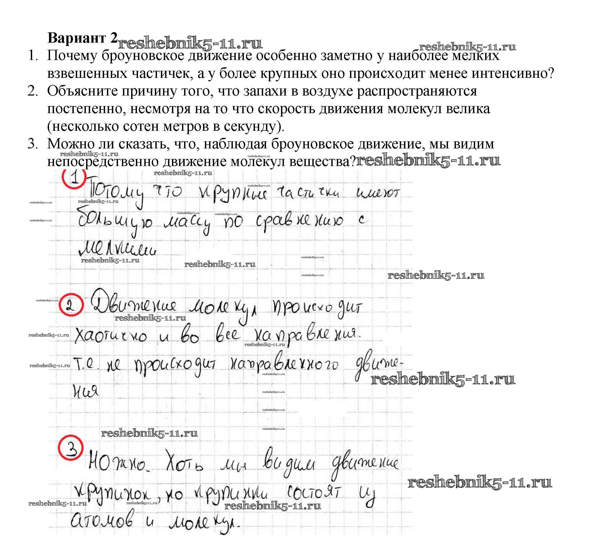 Решебник №1 / самостоятельная работа / ср-№9. броуновское движение / вариант №2