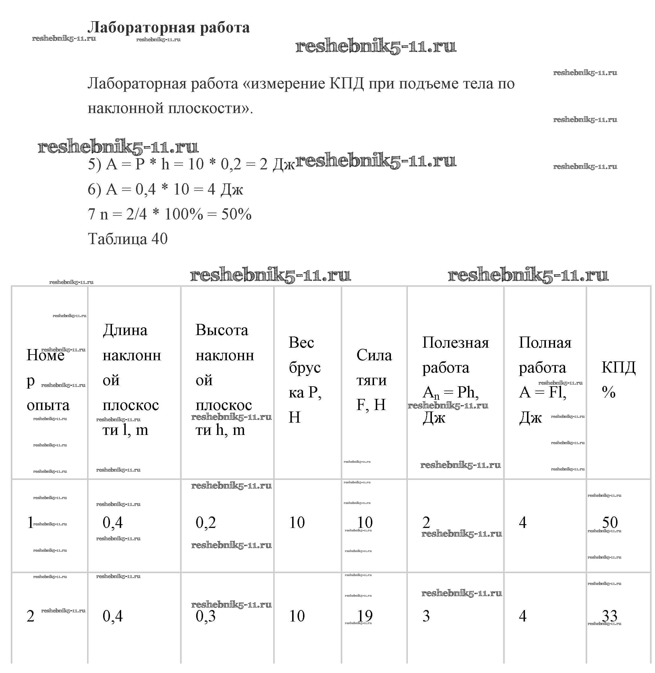 Готовая домашняя работа с ответами по Физике за 7 класс Пурышева, Важеевская Рабочая тетрадь Дрофа 2018 ФГОС - Лабораторная работа измерение КПД 10