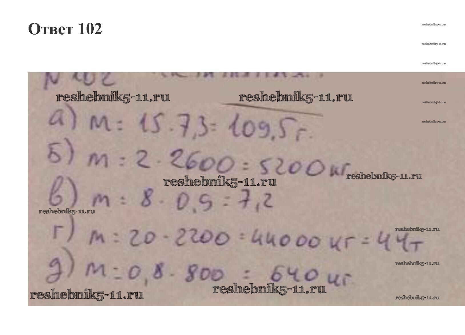Готовая домашняя работа с ответами по Физике за 7 класс Пурышева, Важеевская Рабочая тетрадь Дрофа 2018 ФГОС - Плотность 102