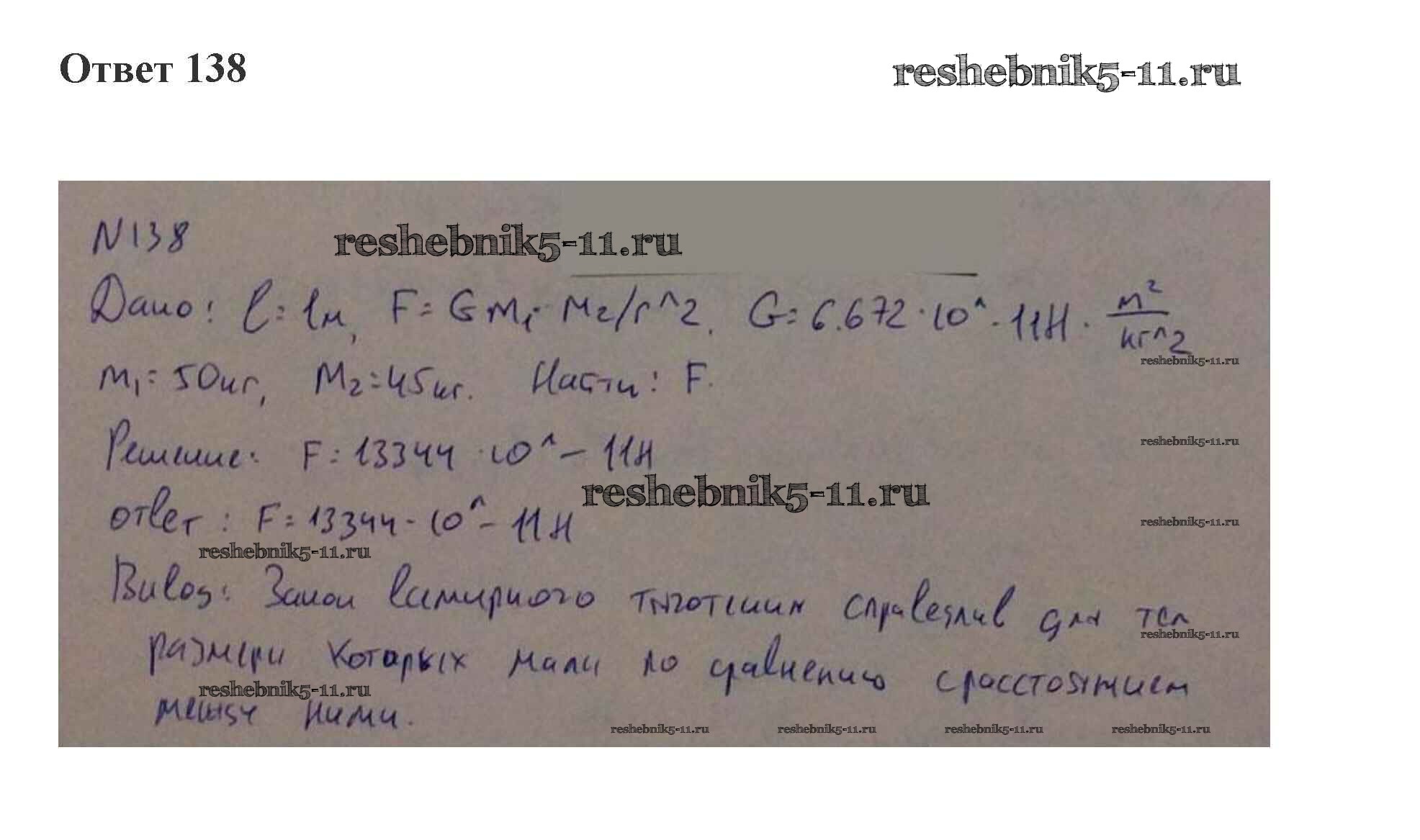 Готовая домашняя работа с ответами по Физике за 7 класс Пурышева, Важеевская Рабочая тетрадь Дрофа 2018 ФГОС - Закон всемирного тяготения 138