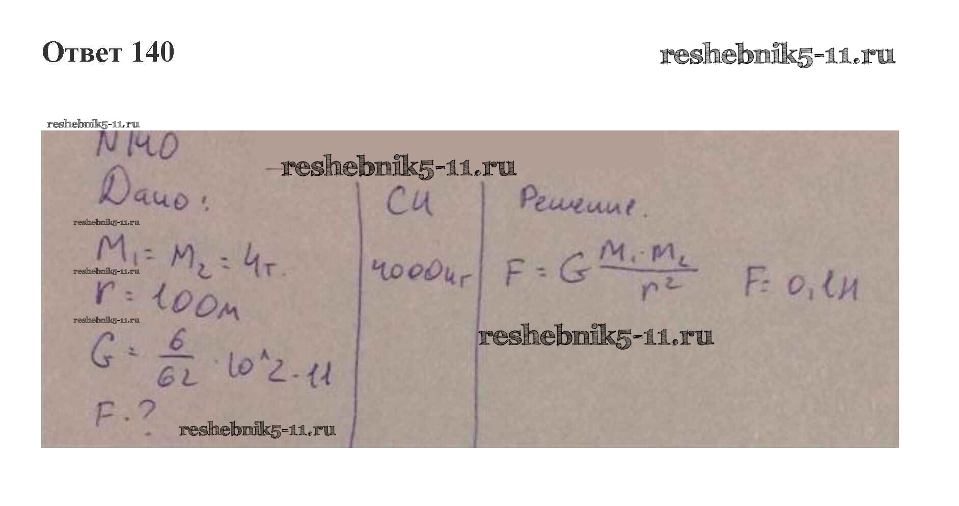 Готовая домашняя работа с ответами по Физике за 7 класс Пурышева, Важеевская Рабочая тетрадь Дрофа 2018 ФГОС - Закон всемирного тяготения 140