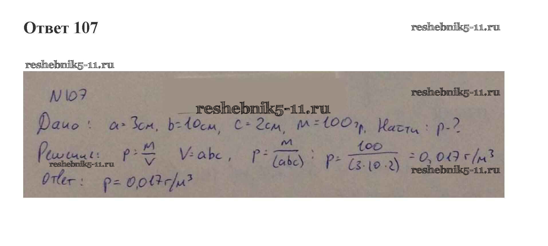 Готовая домашняя работа с ответами по Физике за 7 класс Пурышева, Важеевская Рабочая тетрадь Дрофа 2018 ФГОС - Плотность 107