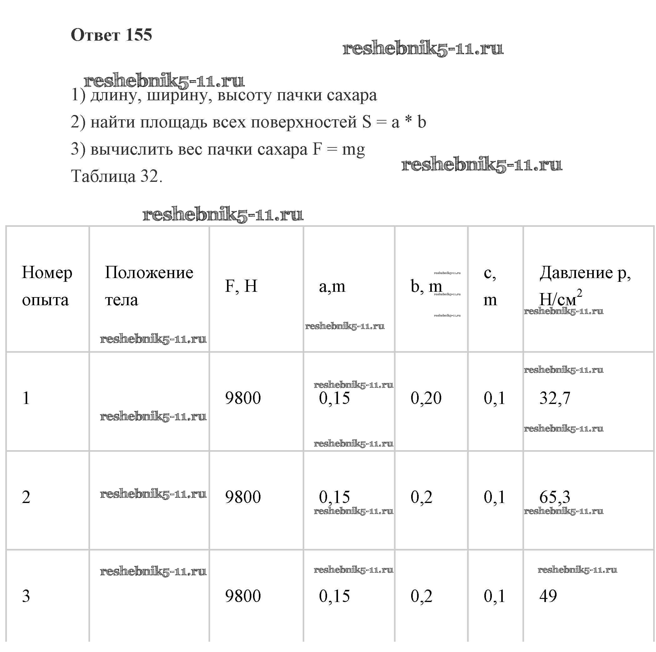 Решебник / механические явления / давление / 155