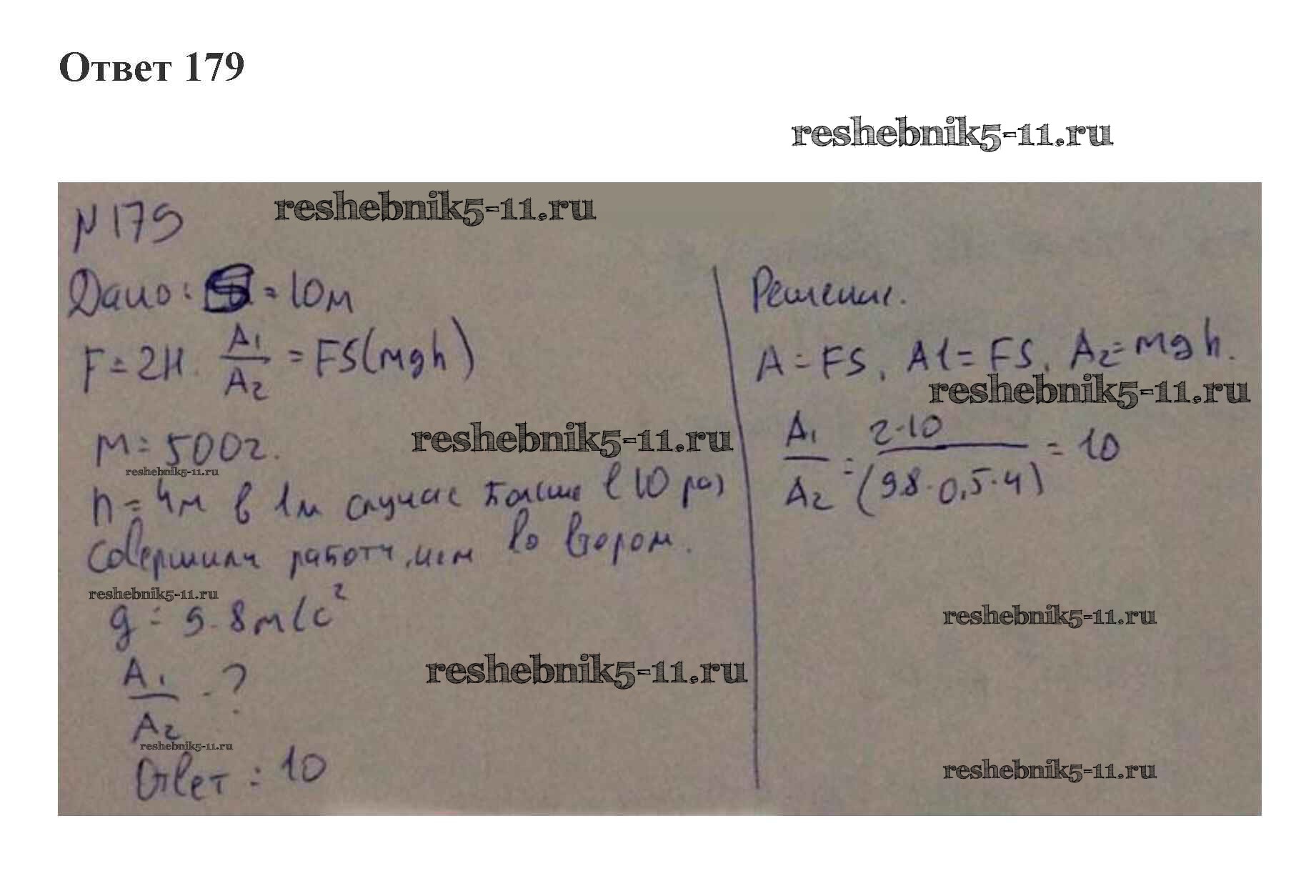 Готовая домашняя работа с ответами по Физике за 7 класс Пурышева, Важеевская Рабочая тетрадь Дрофа 2018 ФГОС - Механическая работа 179