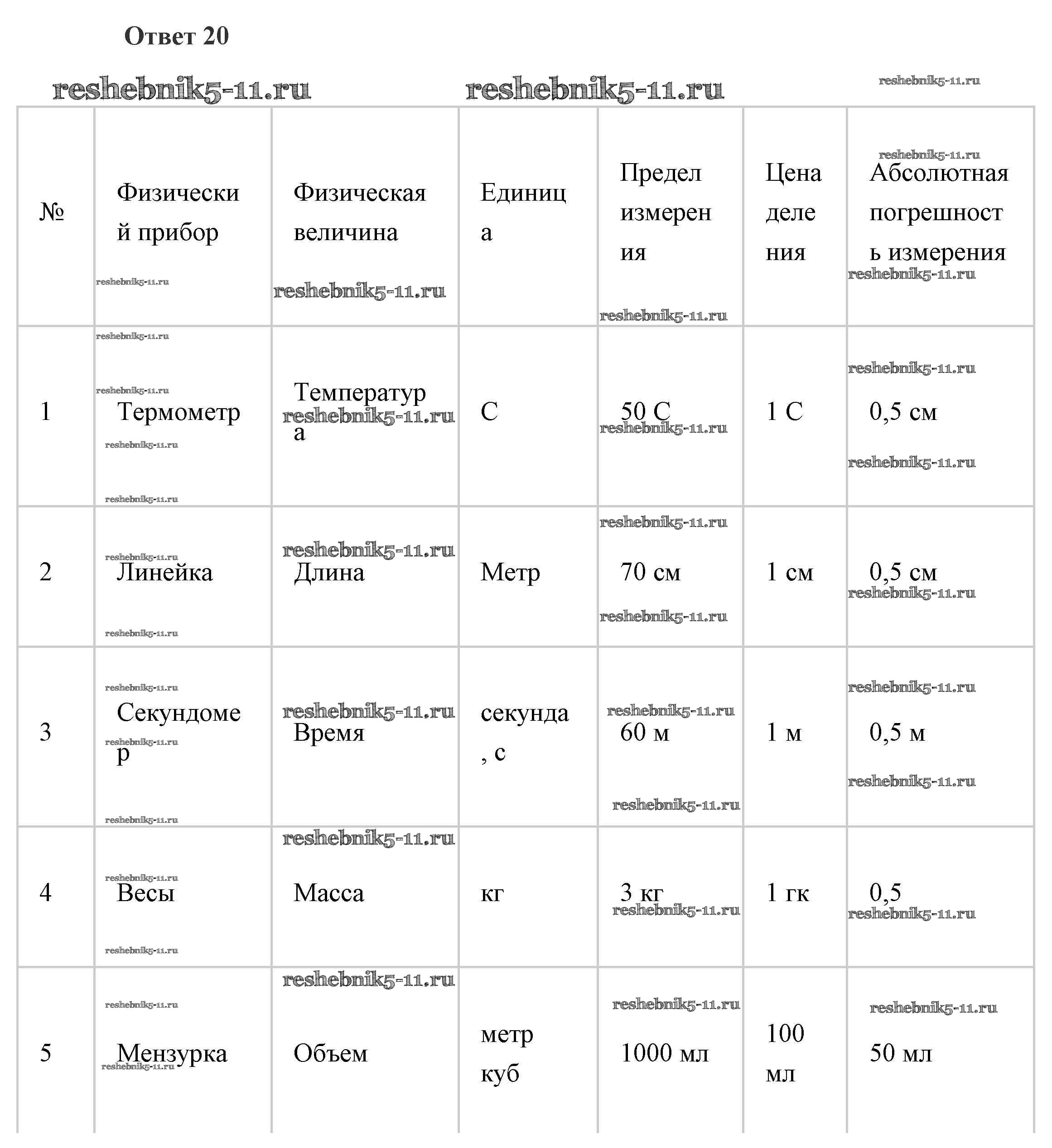 Готовая домашняя работа с ответами по Физике за 7 класс Пурышева, Важеевская Рабочая тетрадь Дрофа 2018 ФГОС - Измерение физических величин 20