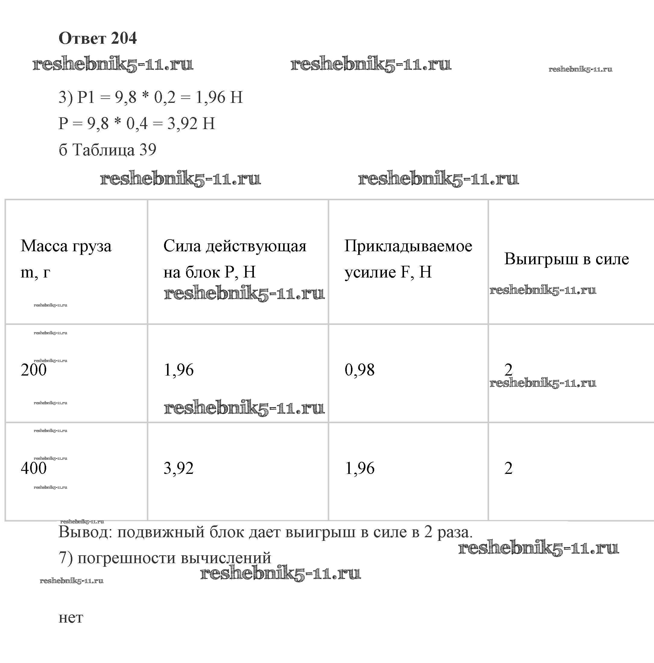 Готовая домашняя работа с ответами по Физике за 7 класс Пурышева, Важеевская Рабочая тетрадь Дрофа 2018 ФГОС - Применение правила 204