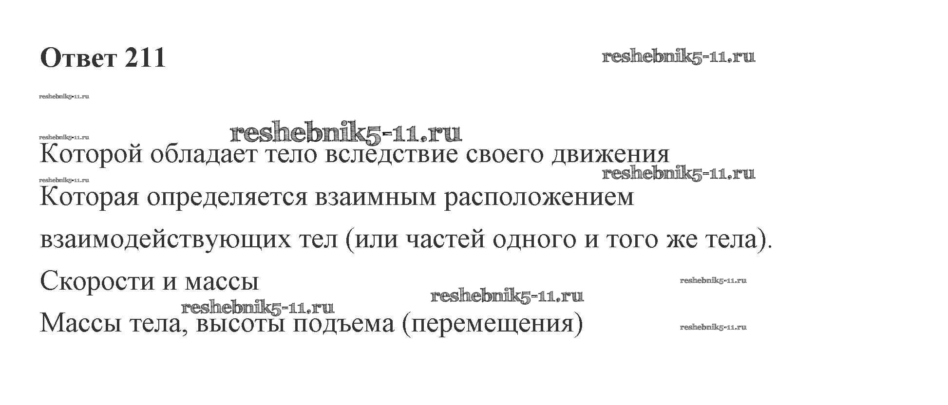Готовая домашняя работа с ответами по Физике за 7 класс Пурышева, Важеевская Рабочая тетрадь Дрофа 2018 ФГОС - Закон сохранения 211