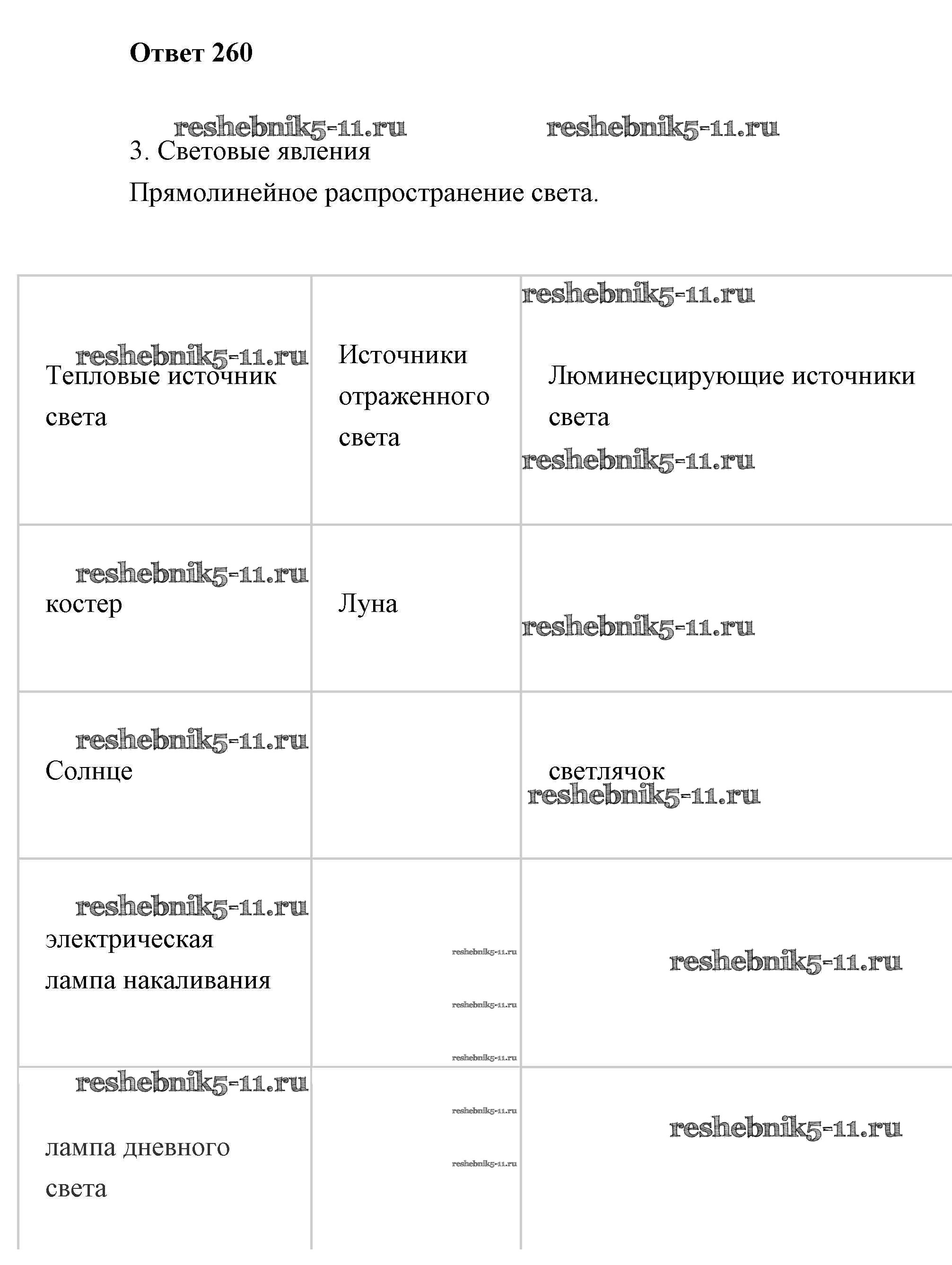 Готовая домашняя работа с ответами по Физике за 7 класс Пурышева, Важеевская Рабочая тетрадь Дрофа 2018 ФГОС - Прямолинейное распространение света 260