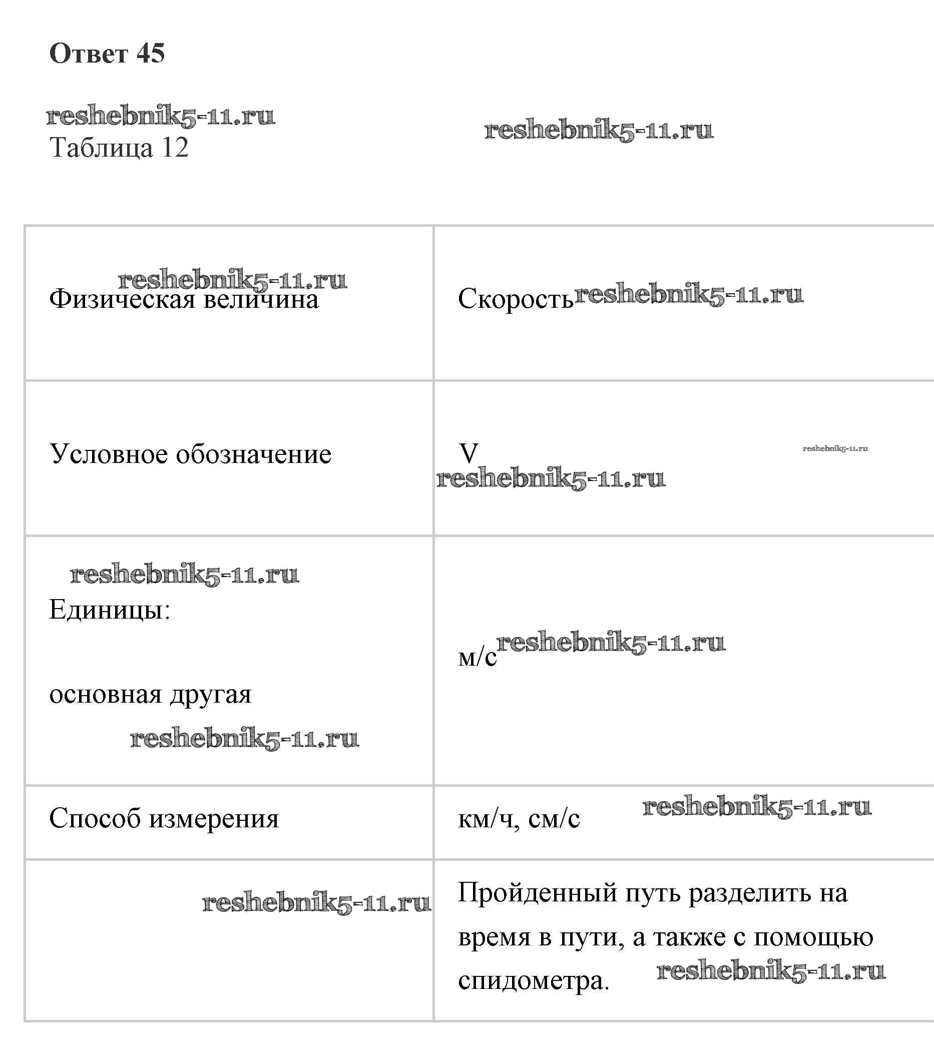 Готовая домашняя работа с ответами по Физике за 7 класс Пурышева, Важеевская Рабочая тетрадь Дрофа 2018 ФГОС - Скорость равномерного 45
