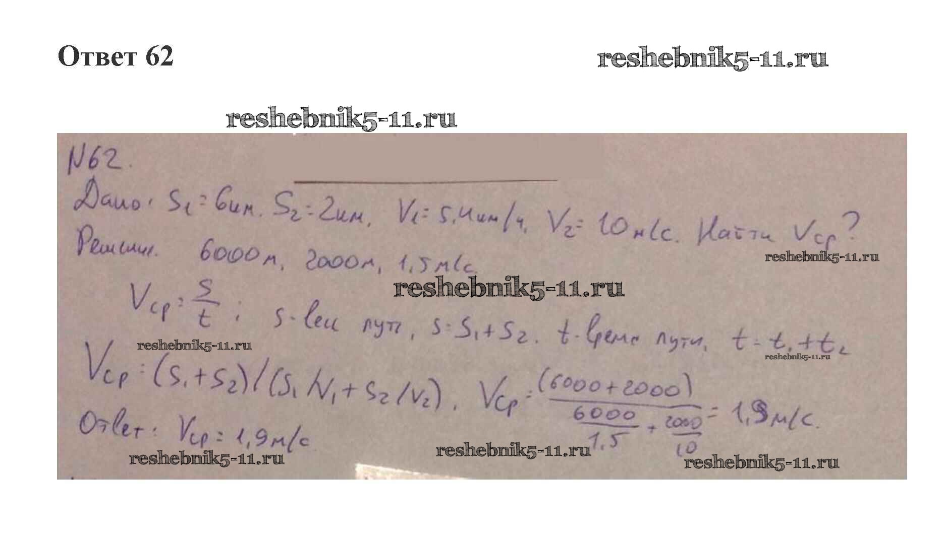 Готовая домашняя работа с ответами по Физике за 7 класс Пурышева, Важеевская Рабочая тетрадь Дрофа 2018 ФГОС - неравномерное движение 62