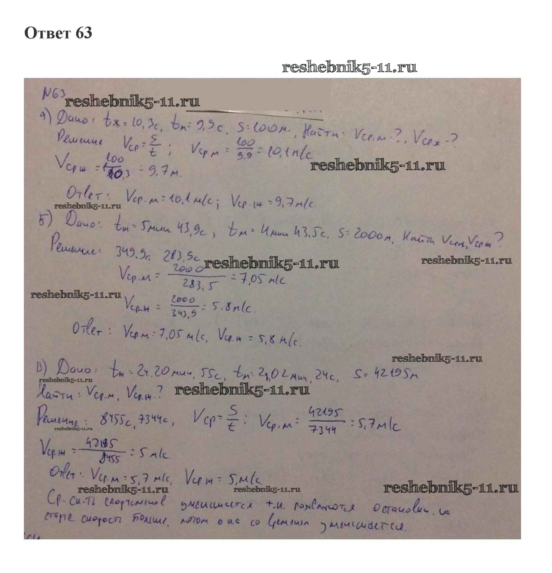 Готовая домашняя работа с ответами по Физике за 7 класс Пурышева, Важеевская Рабочая тетрадь Дрофа 2018 ФГОС - неравномерное движение 63