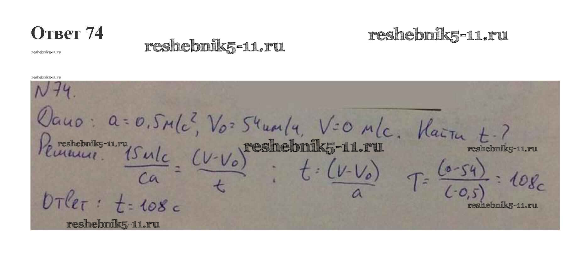 Готовая домашняя работа с ответами по Физике за 7 класс Пурышева, Важеевская Рабочая тетрадь Дрофа 2018 ФГОС - Равноускоренное движение 74