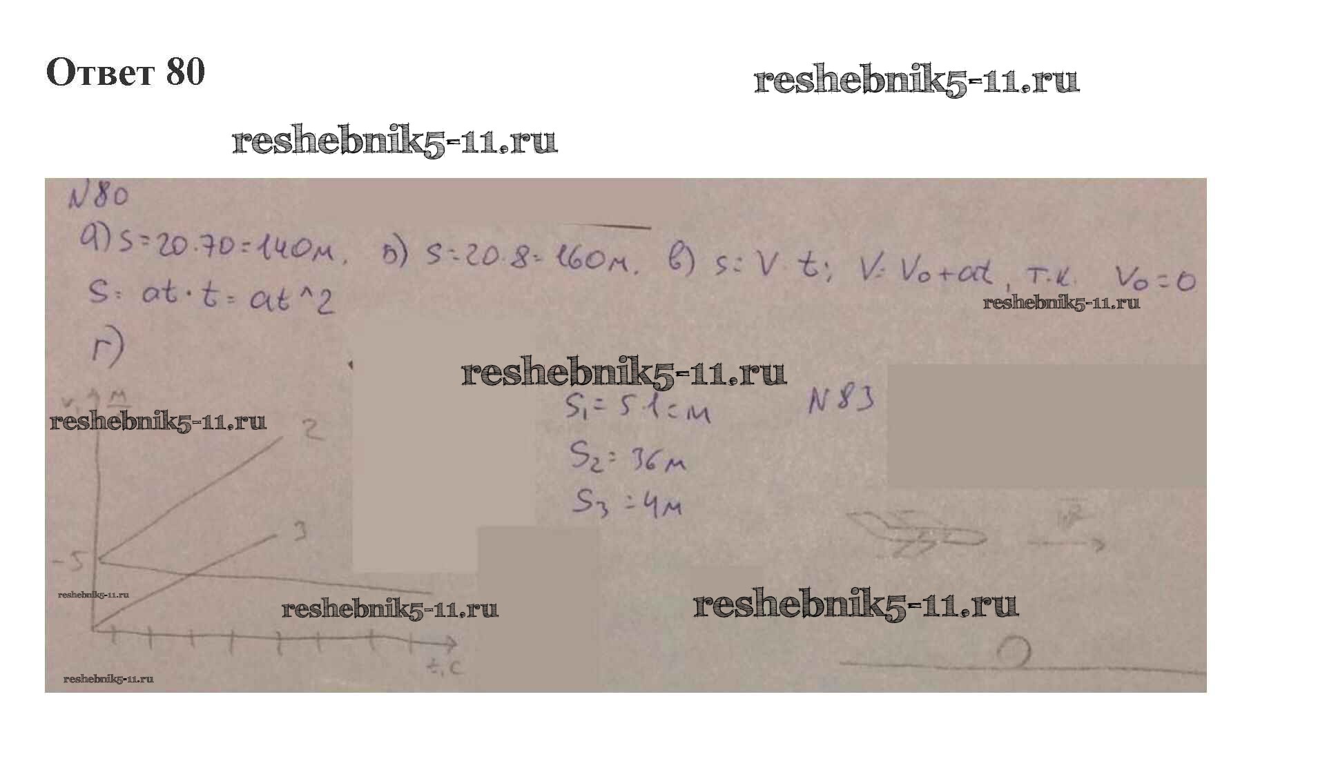 Готовая домашняя работа с ответами по Физике за 7 класс Пурышева, Важеевская Рабочая тетрадь Дрофа 2018 ФГОС - Равноускоренное движение 80