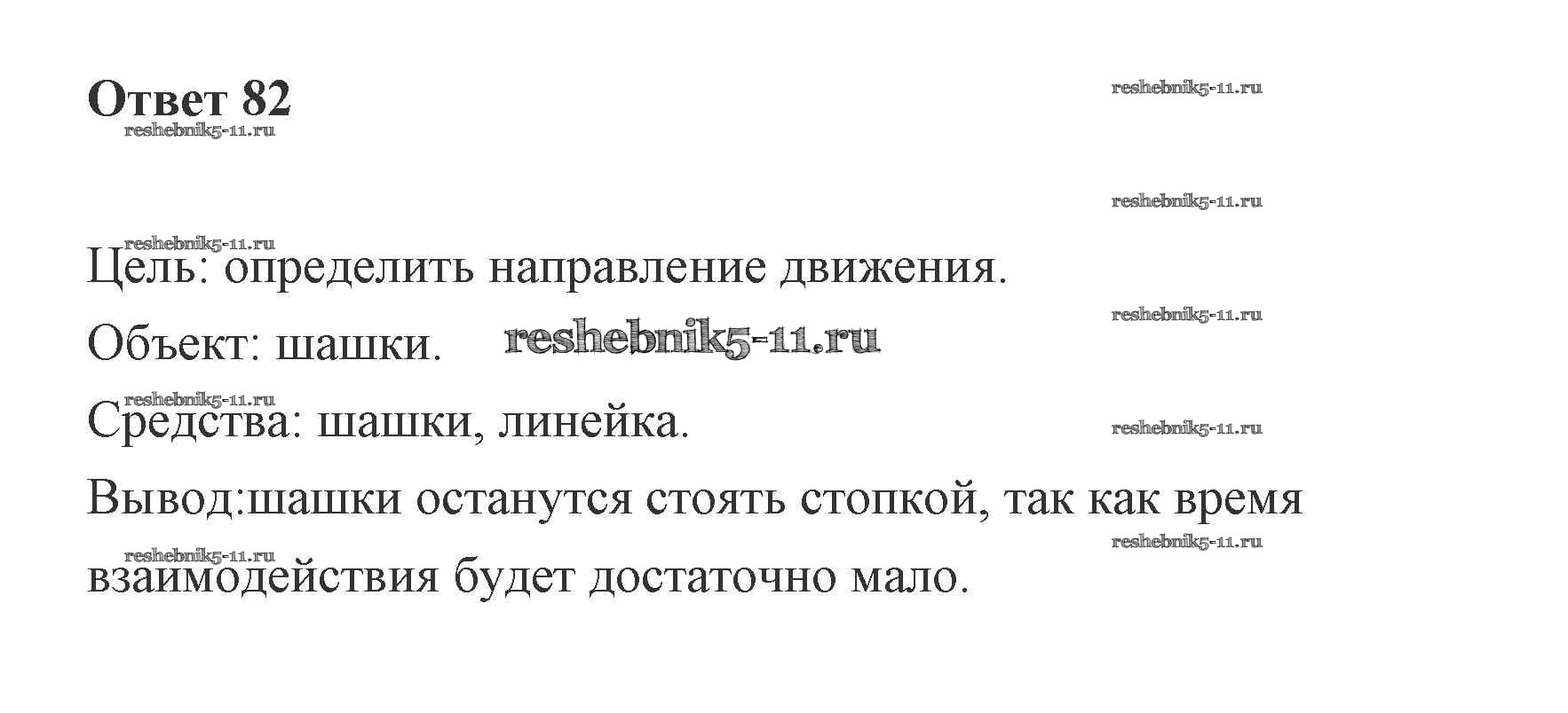 Готовая домашняя работа с ответами по Физике за 7 класс Пурышева, Важеевская Рабочая тетрадь Дрофа 2018 ФГОС - Инерция 82