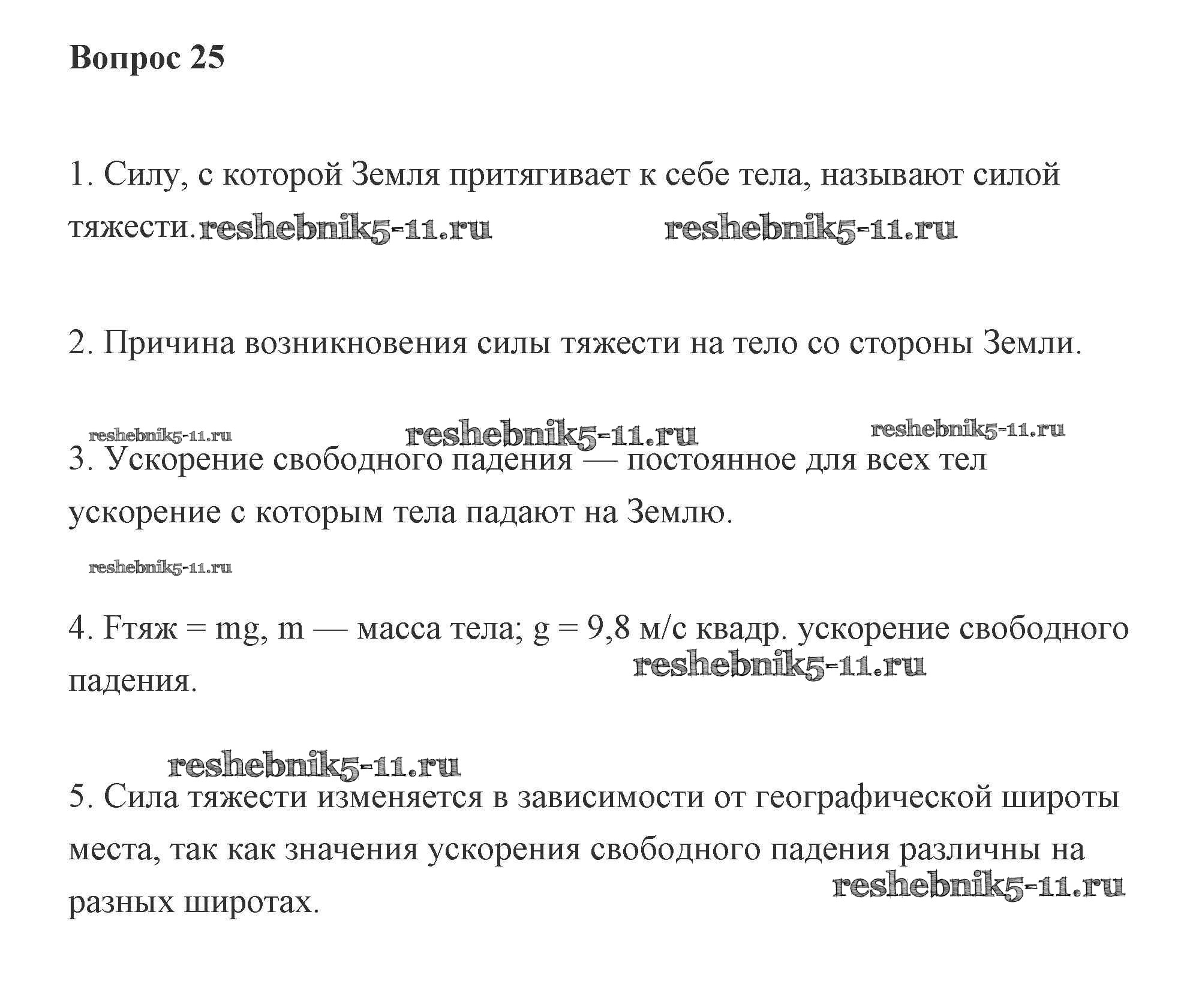 Готовая домашняя работа с ответами по Физике за 7 класс Пурышева, Важеевская Учебник Дрофа 2011 ФГОС - Вопросы 25