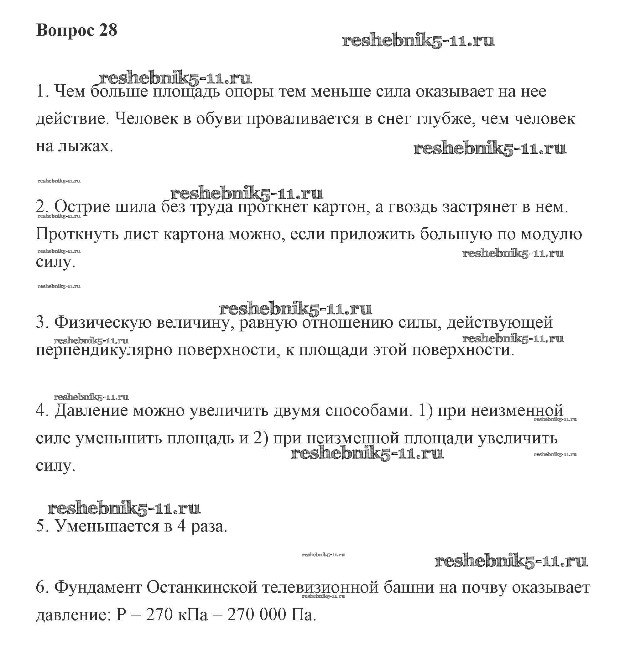 Готовая домашняя работа с ответами по Физике за 7 класс Пурышева, Важеевская Учебник Дрофа 2011 ФГОС - Вопросы 28
