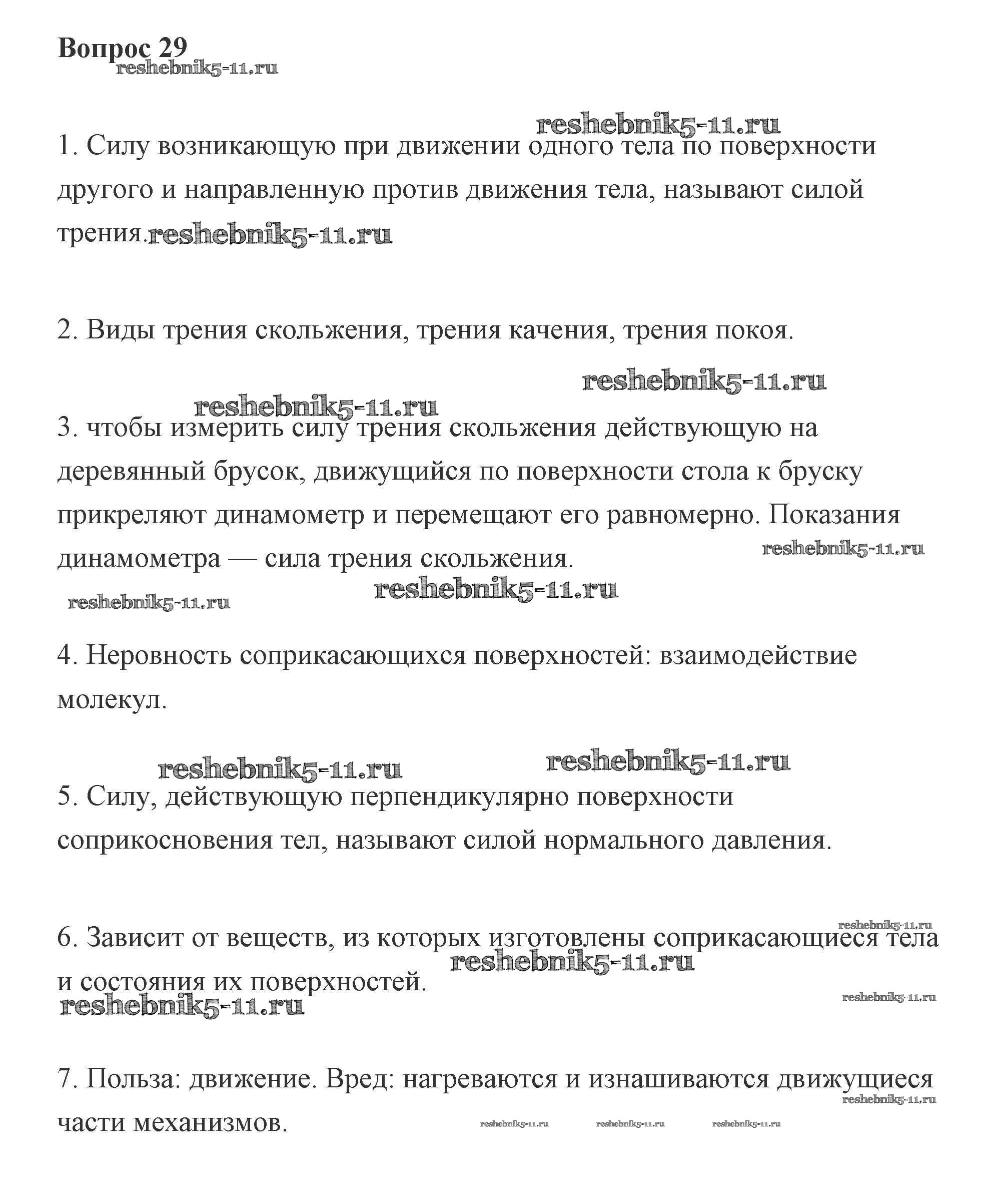 Готовая домашняя работа с ответами по Физике за 7 класс Пурышева, Важеевская Учебник Дрофа 2011 ФГОС - Вопросы 29