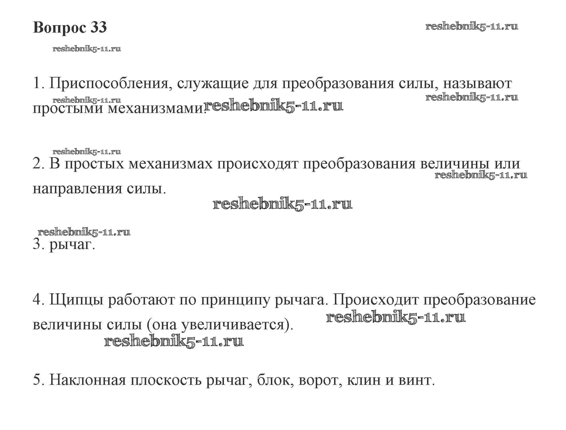 Готовая домашняя работа с ответами по Физике за 7 класс Пурышева, Важеевская Учебник Дрофа 2011 ФГОС - Вопросы 33